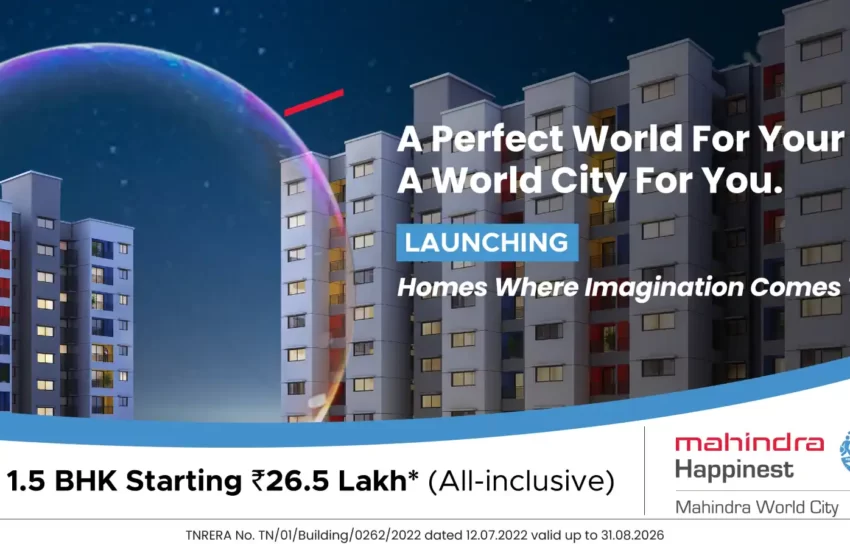 For Sale Sale Rs. 24.99 L – Rs. 36 L Residential Mahindra Happinest Apartments Mahindra Word City Singaperumalkovil Chennai P17, 1st Cross 2nd Avenue Mahindra World City, Chengalpattu, Tamil Nadu 603004 Jumbo Realty 3 years ago