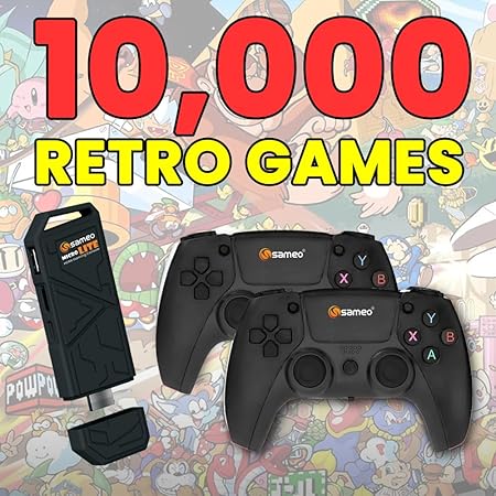 Sameo Micro Lite HDMI Gaming Console Game Stick Built in 10000 Retro Video Games Dual Player 4K Ultra HD Wireless TV Game Stick for Kids-Black(New)
