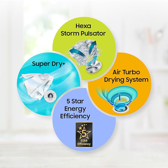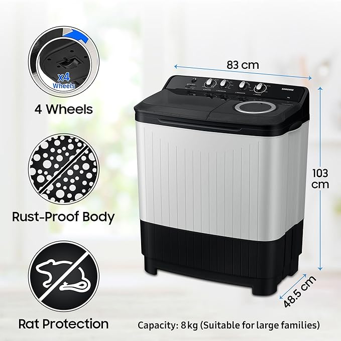 Samsung 8 kg, 5 star, Semi-Automatic Top Load Washing Machine (WT80C4200GG/TL, Air Turbo Drying, Light Gray, 2023 Model)