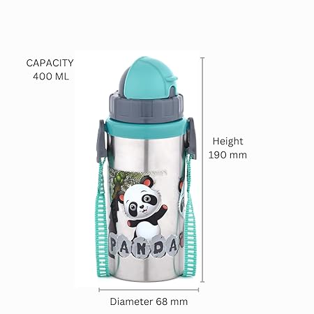 SANGHAVI PLAST First Choice Jumbo Water Bottle for Kids 400ml, Kids Water Bottle, Sipper Bottle for Kids, Stainless Steel Water Bottle for Kids, Straw Bottle for Kids (GREEN)