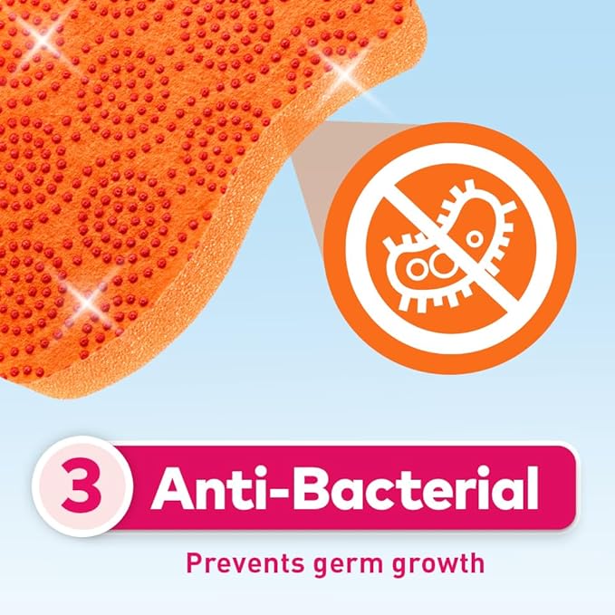 Cleans without scratching – abrasive dots on coating scrubs messes without damaging surfaces