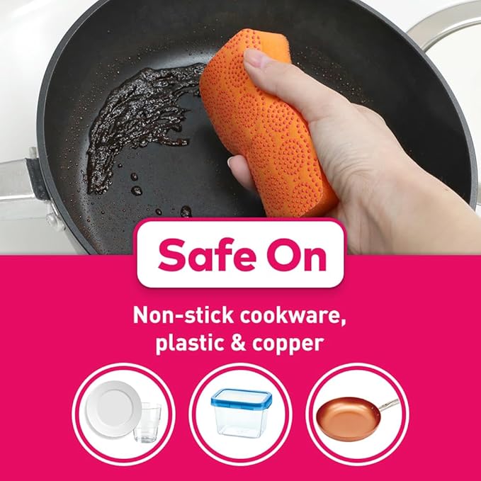 Suitable for cleaning ceramics, glass, plastic, non-stick and copper cookware