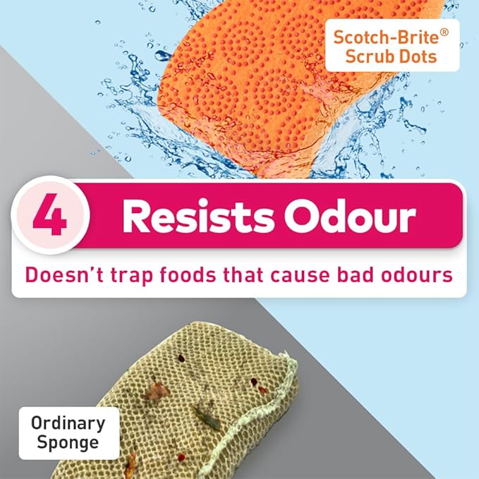 Scotch-Brite Scrub Dots Non-Scratch Sponge, Suitable for Ceramics and Non-Stick Ware, rinses Clean and Stays Odor Free (2 Pieces)
