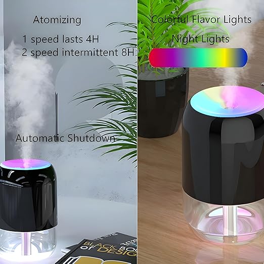 Soothing Ambiance: This ultrasonic humidifier features a colourful LED light that cycles through a spectrum of soothing hues, creating a tranquil ambiance.