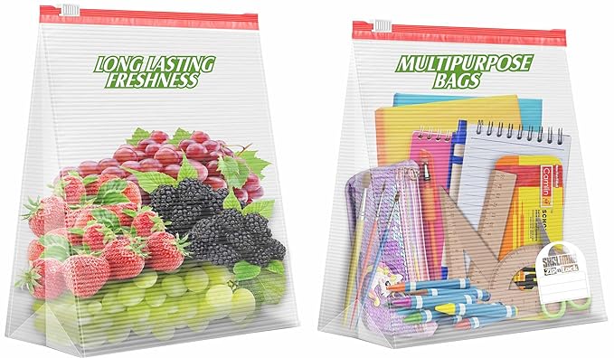 Shalimar Zip ‘N’ Lock plastic Slider Bag (3 Boxes) Combo Pack (Small + Medium + Large) Zip Lock/Vegetable Bag/Freeze/Multi-Purpose Storage Bag (Pack of 45) Color – Natural