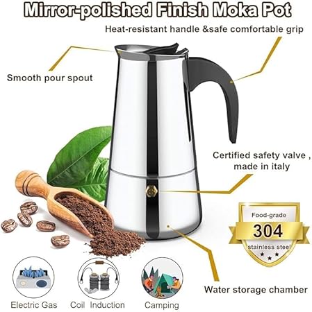 ✪VERSATILE STOVE COMPATIBILITY: This SS coffee pot is compatible with the general gas stove, hot plates, and induction stove as well. The bottom is carefully constructed keeping in mind its use on different stoves.