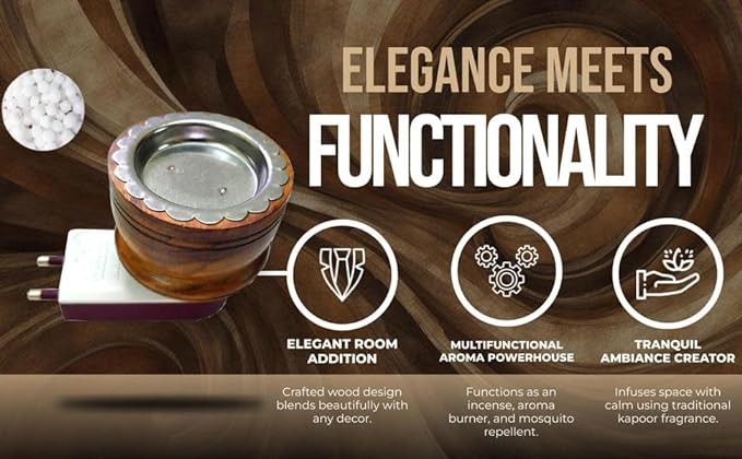 SIGNAMIO® Wooden Kapoor Kapur Dani Camphor Karpuram Aroma Oil Diffuser Incense Burner Electrical Stand Machine Holder for Home,Office (Camphor NOT Included) DN-1