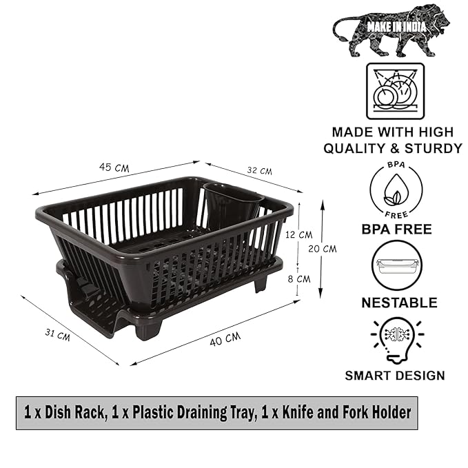 Package Included :1 x Dish Rack, 1 x Plastic Draining Tray, 1 x Knife and Fork Holder