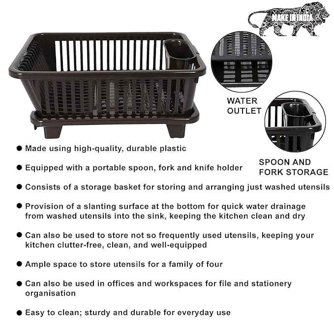 Consists of a storage basket for storing and arranging just washes utensils. Ample space to store utensils for a family of four.