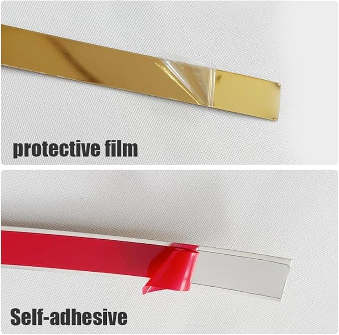 Simxen Golden Metal Trim Wall Strip Stainless Steel PVD Coated 8K Mirror Gold Finish Flat Trim Strip Profile 15 mm x 16.4ft (5mtr) Roll for Wall Decoration, Furniture, Highlighters.