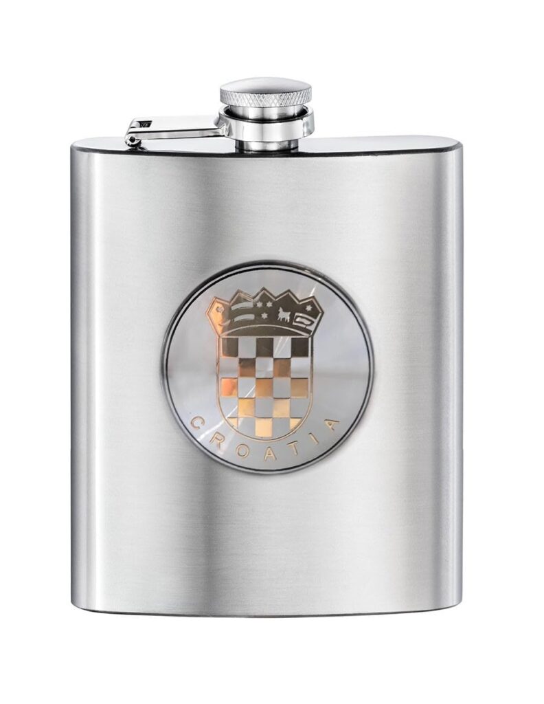 SKDBPM Stainless Steel Hip Flask, Alcohol Drinks Wine Whiskey Holder Bottle Or Liquor Flasks for Men, Alcoholic Beverage Holder 8Oz (236 ml) – Silver (Hip Flask-Croatia)(Pack of 1)
