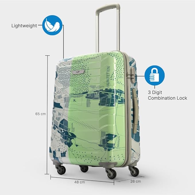 Skybags ABS Trooper Medium Size Hardshell Luggage (65 Cm) | Printed Luggage Inline Trolley Bag with 4 Wheels and Resetable Combination Lock | Unisex, Green