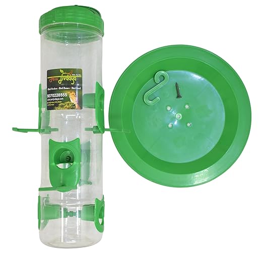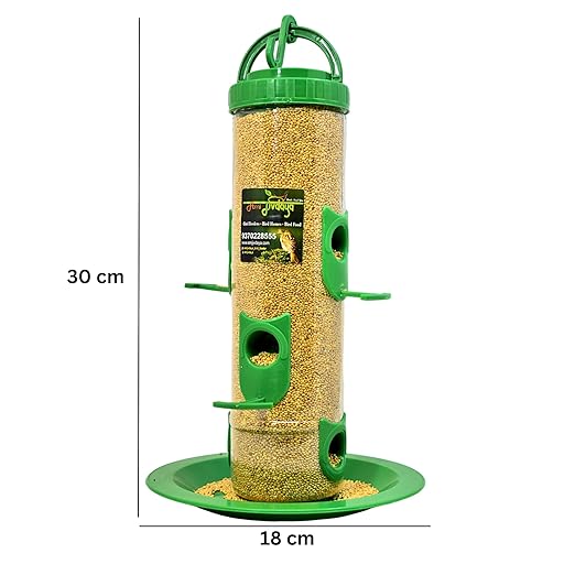 Skybeings Plastic Large Bird Feeder | 6 Feed Nozzles | 30cm Height | 900gram Bird Food Capacity | Hanging Bird Feeder for Balcony | Bird Food Feeder | Garden Outdoor Hanging Bird Feeder | 2 psc Green