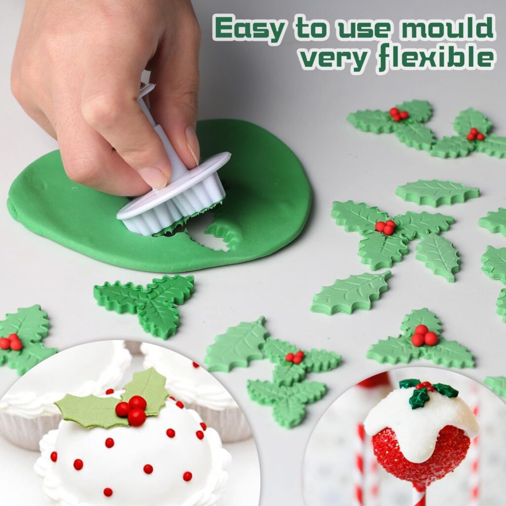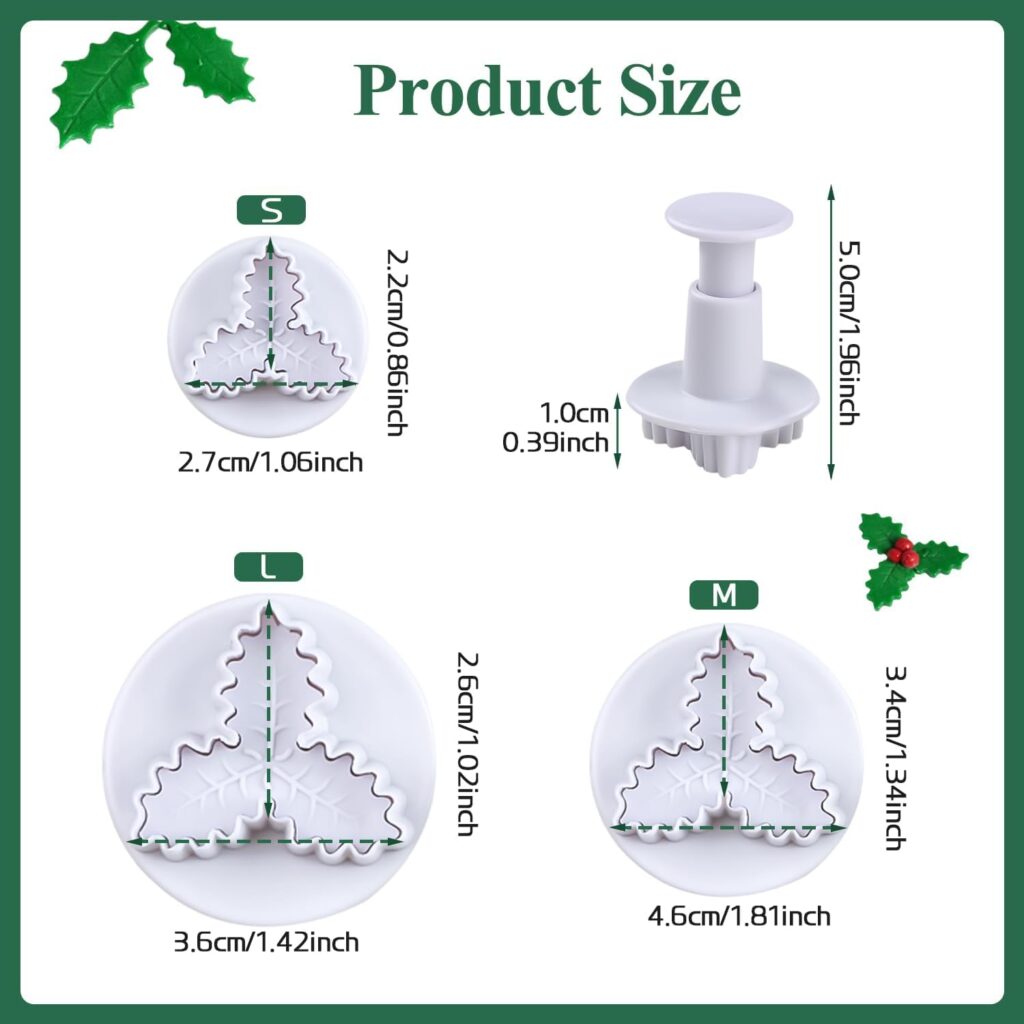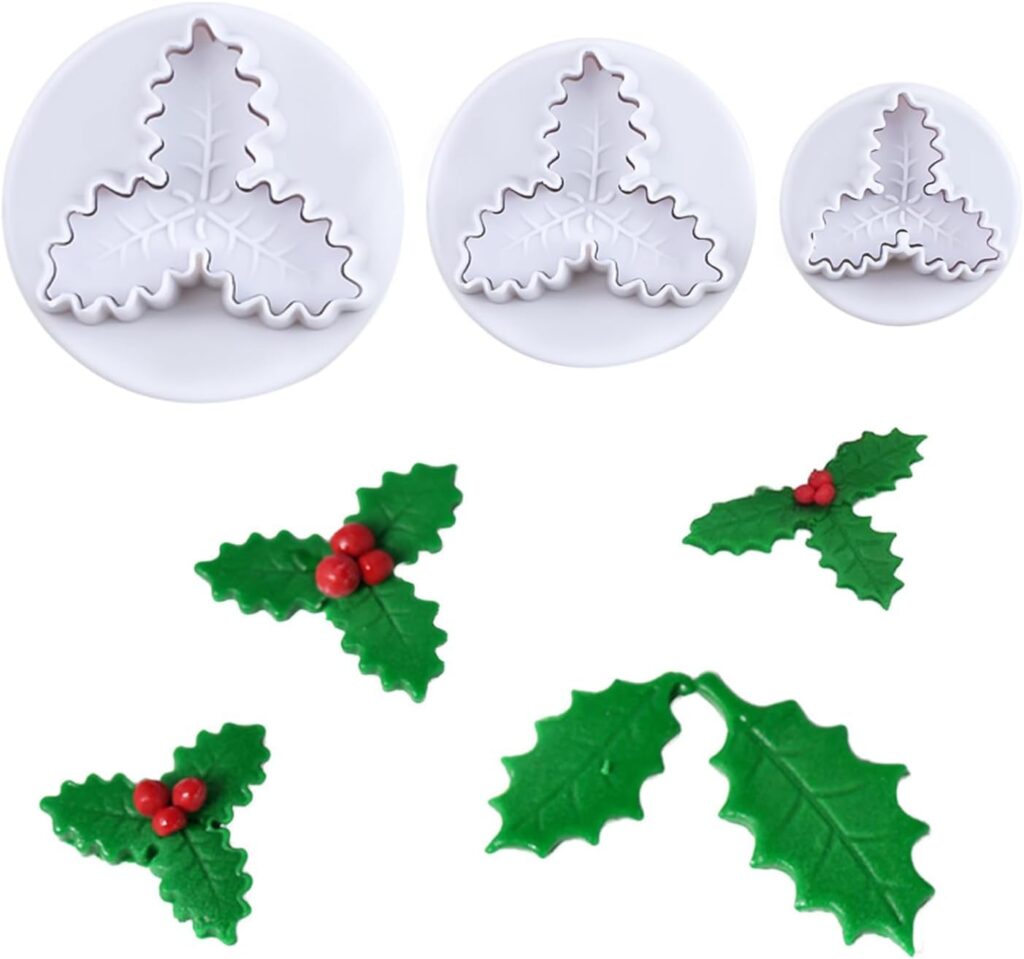 Skytail 3pc Holly Leaf Shape Plunger Cutter Set Dough Cutter Cookie Stamp Chocolate Fondant Sugarcraft Gumpaste Christmas DIY Cake Decoration Cupcake Topper Decorating Tool Mold Party Snacks Treats