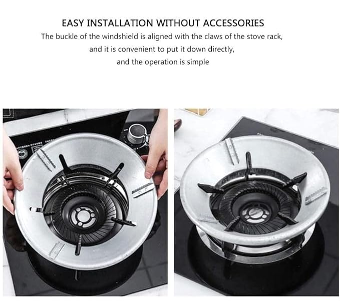 Energy Saving: With the gas stove wind shield bracket, the fire can be concentrated and not dispersed, and the heat is locked. It only needs about 2/3 of the original firepower to achieve the original firepower effect to reduce heat energy loss and accelerate the cooking speed.
