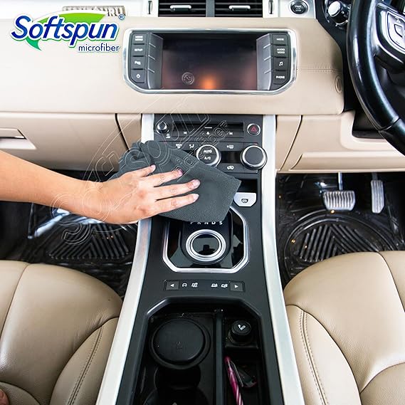 SOFTSPUN Microfiber Cloth – 5 pcs – 40×40 cms – 340 GSM Grey- Thick Lint & Streak-Free Multipurpose Cloths – Automotive Microfibre Towels for Car Bike Cleaning Polishing Washing & Detailing