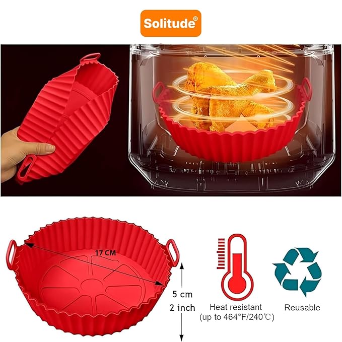Solitude® Air Fryer Liner I Round Silicone Basket Baking Tray I Pot with Ear Handles I Nonstick Reusable Heat Resistant I Cooking Oven Insert Accessories – Multicolor (8 Inch, Pack of 1)