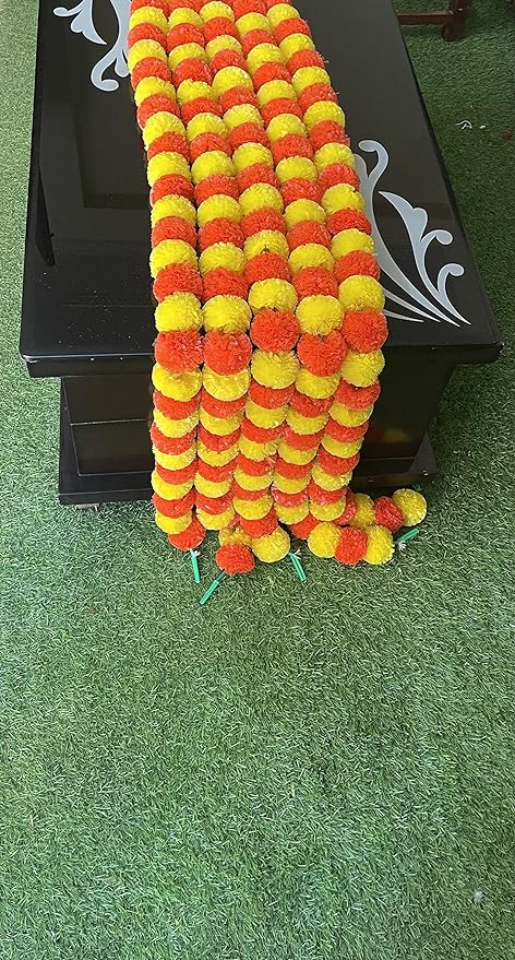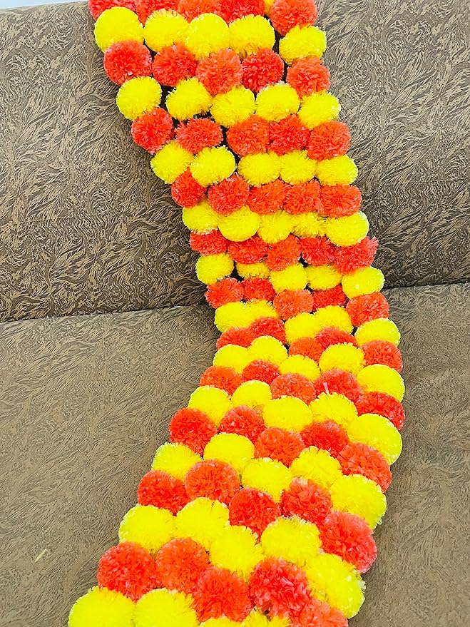 Package includes -Sphinx artificial marigold fluffy flowers garlands for decoration as per selected color. 1 packet has 5 strings