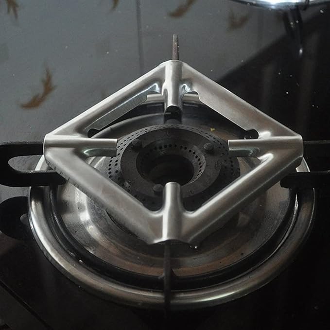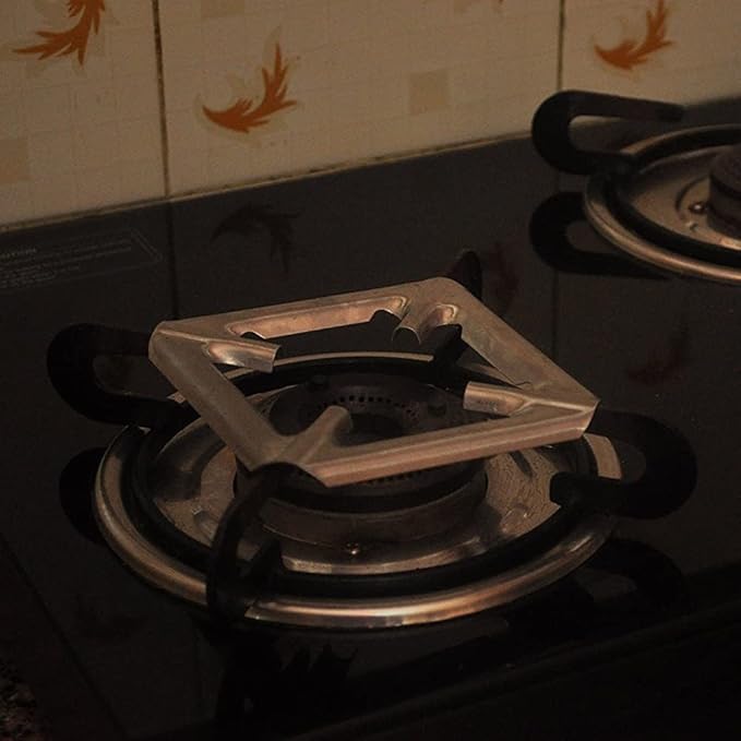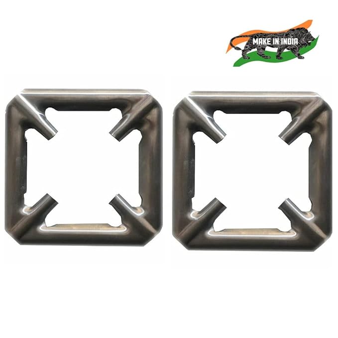 SpiderJuice 2Pc Universal Removable Stainless Steel Square Shape Gas Saver Chula Stove Burner Stand Holder Trivets Support Jali Ring for Small Size Kadai Bowls Vessels Pan Pots Utensils Vagharia Vati Burtan