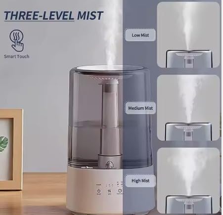 Ssanvi 3.5 L Humidifier For Room, Easy Top Fill Ultrasonic Cool Mist Air Humidifier For Cold And Cough, Essential Aroma Oil Diffuser for Baby Bedroom With Night Light (Grey Tank with White Base)