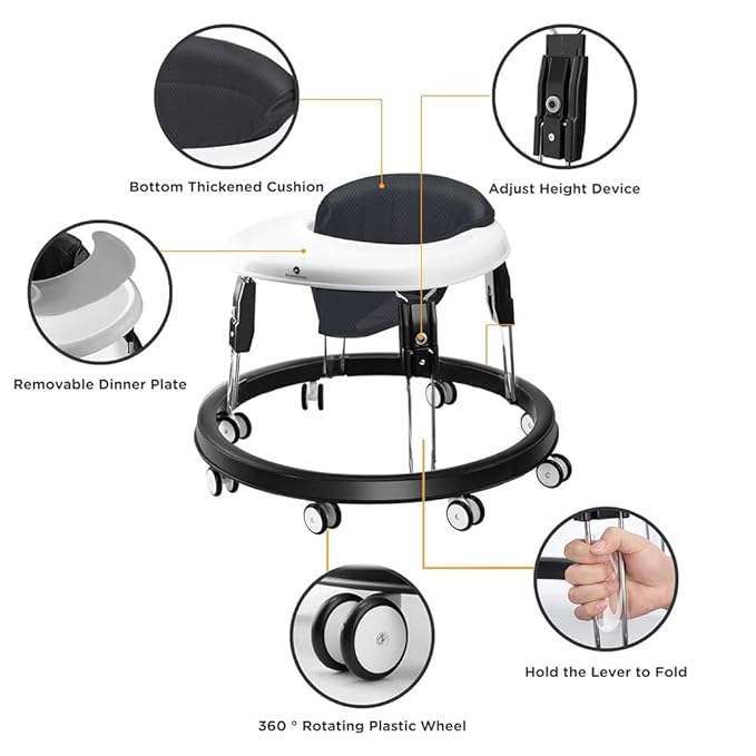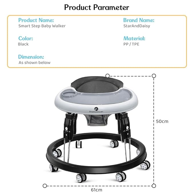 StarAndDaisy Baby Walker for 6 to 24 Months/Walker for Baby/Kids with 360° Rotational Wheels & Padded Seat, with Adjustable Height for Boys & Girls (Black)