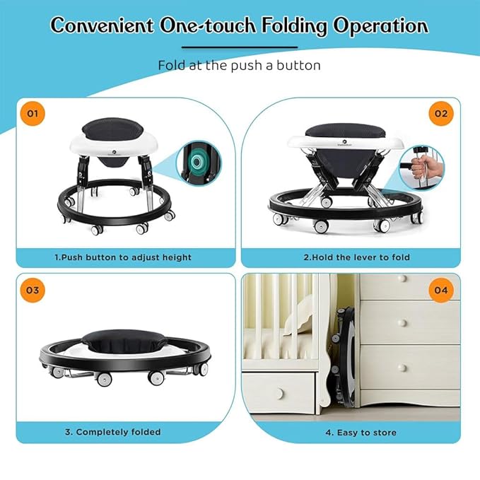 🛡️ Anti-Fall Safety Feature: Built with a smart anti-fall system that ensures the walker stays stable on uneven surfaces or at the edges, giving parents peace of mind.