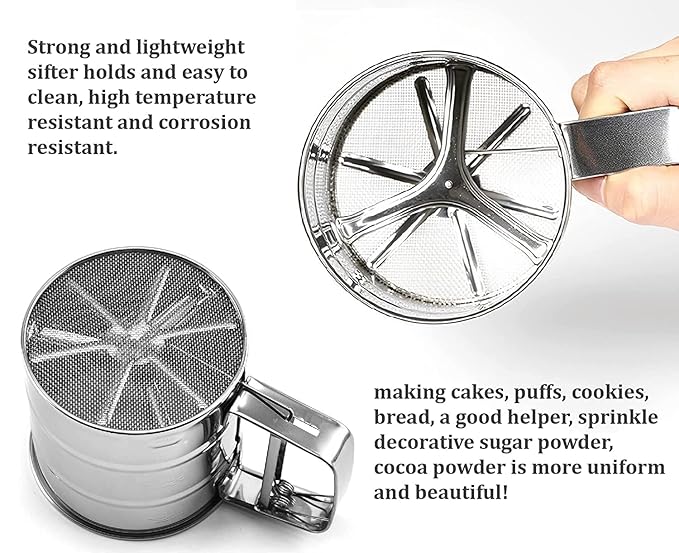 STAREWA Flour Sifter/Atta chhani Hand Press Design Stainless Steel Flour Sifter Corrosion Resistant Large Capacity Flour Sieve Cup for Sugar Flour and Coffee Powder | Atta Chalni