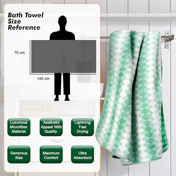 Status Contract Bath Towels |(70 x140 cm) Coral Fleece Quick Dry Towel| Luxury Bath Towels with Hook |Lightweight Travel Towel | Microfiber Hair Towel for Men & Women |(Green), 300 Tc