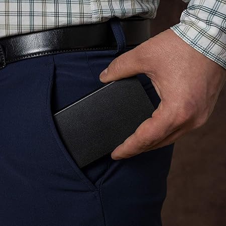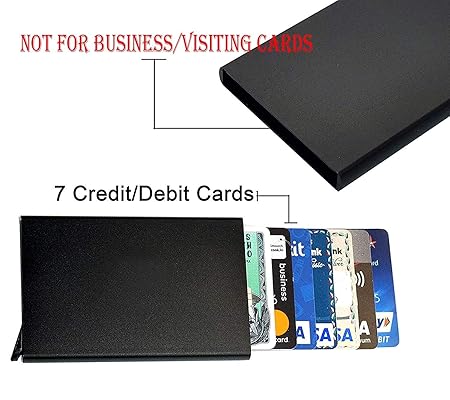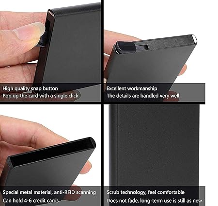 ONE-HAND CONTROL POP-UP CARD EJECTOR : You don’t have to slide out your credit cards out with both of your hands anymore. With one click, all your cards will slide out at ascending lengths so you’ll be able to see all your cards at once. Cards are nicely spread when ejected but won’t fall out of sleeve.