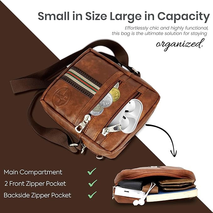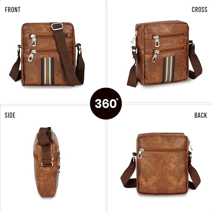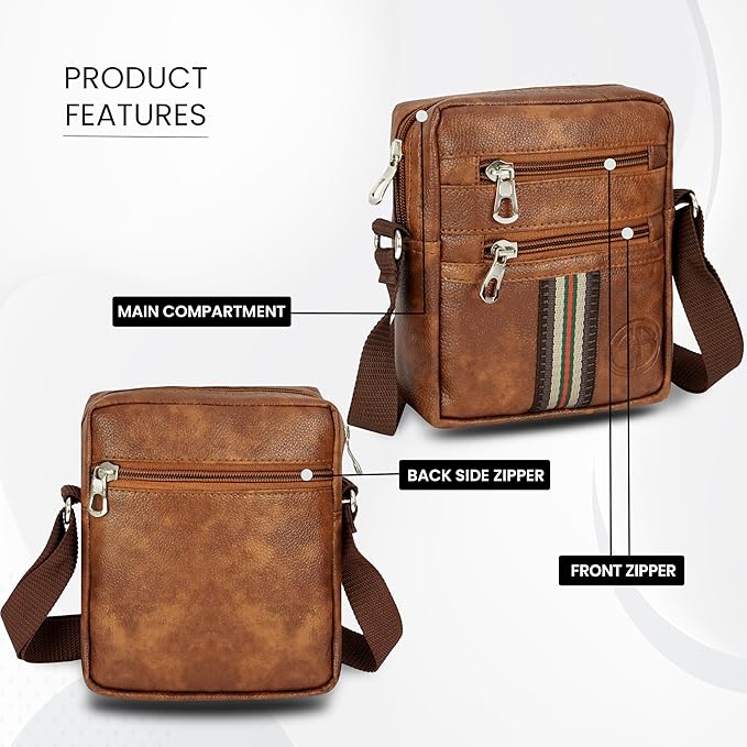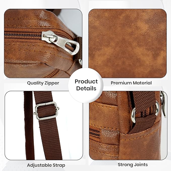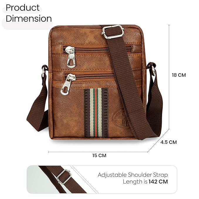 Storite Stylish Small PU Leather Sling Cross Body Travel office One Side Shoulder Bag With Adjustable Strap for Men & Women – Brown