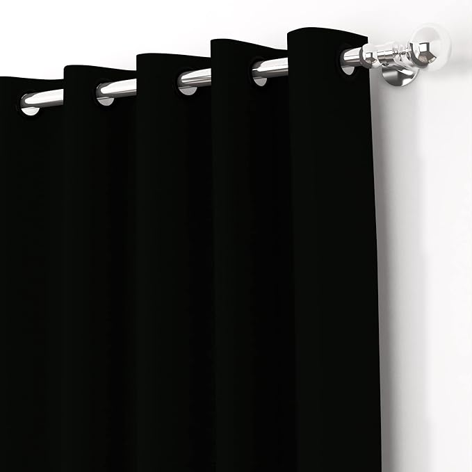 Story@Home Blackout Door Curtains 7 Feet Long Set of 2, Faux Silk, Thermal Insulated, Plain Design Blackout Curtains for Living Room, 116 X 215 cm, Black, 100% Opacity, Perfect for Festive Gifting