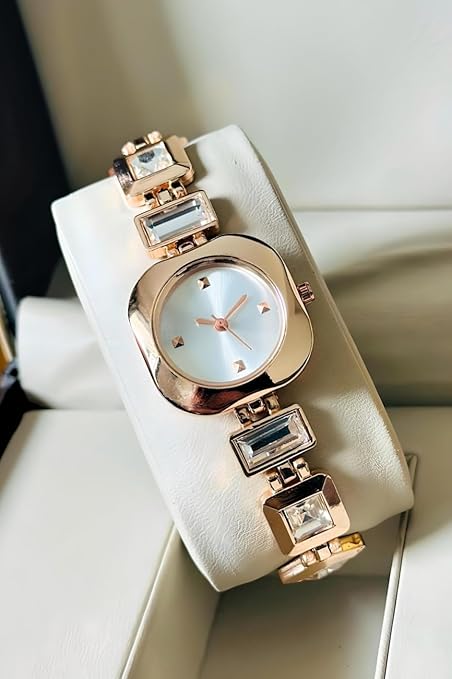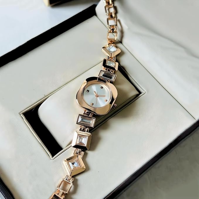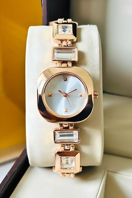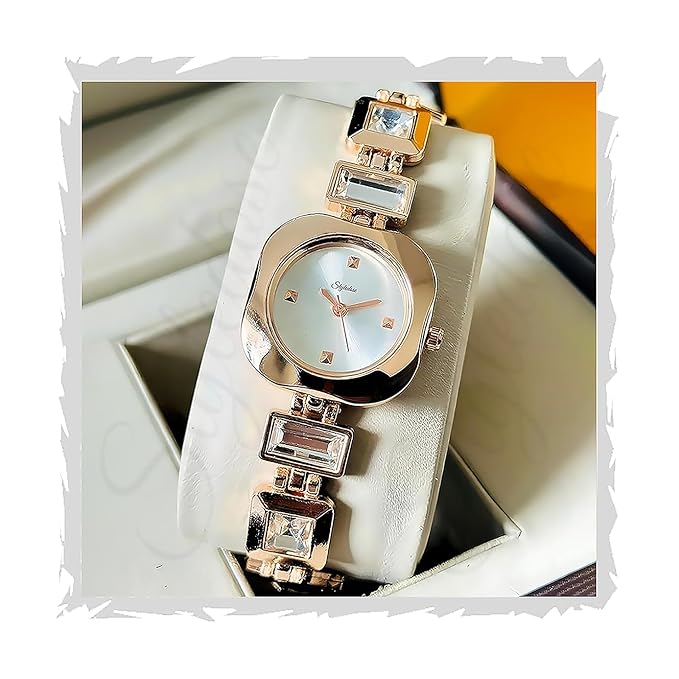 Elegant Design: Stylish square case with a stone-studded bracelet strap, offering a luxurious and modern look for women and girls.