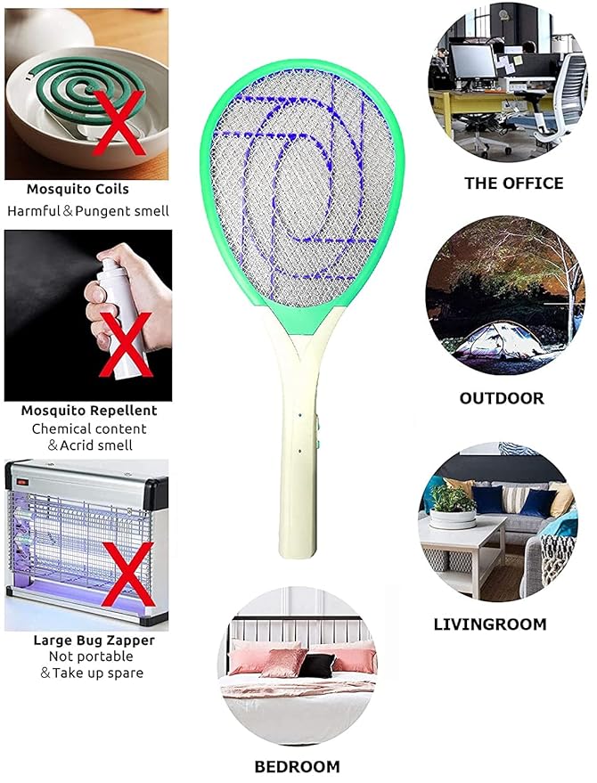About this item Pack Contains: 1 Mosquito Bat with Charging Slot Attached in it (No Wire Charging) High coil fence make it more effective – 500V Coil circuit consists of a flyback topology transformer Backup of 4.5 Hrs, 3 layer net NOTE: Charge the battery for 40 minutes before use