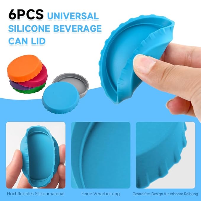 Supvox® 6Pcs Universal Silicone Soda/Beer Can Lids, Beverage Can Sealer Cap Silicone Soda Saver Can Lids for Hot & Cold Drinks, 2.5 Inches Diameter, Cannot Prevent Carbon Dioxide from Disappearing