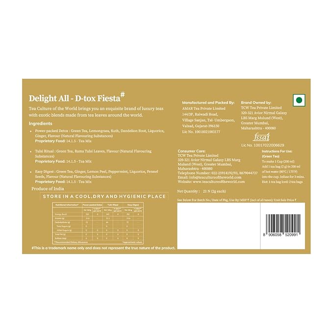 Tea Culture of the World, Detox Fiesta | Assorted Green Tea | Power-Packed Detox, Tulsi Ritual, Easy Digest | 3 Flavors, 21 Tea Bags