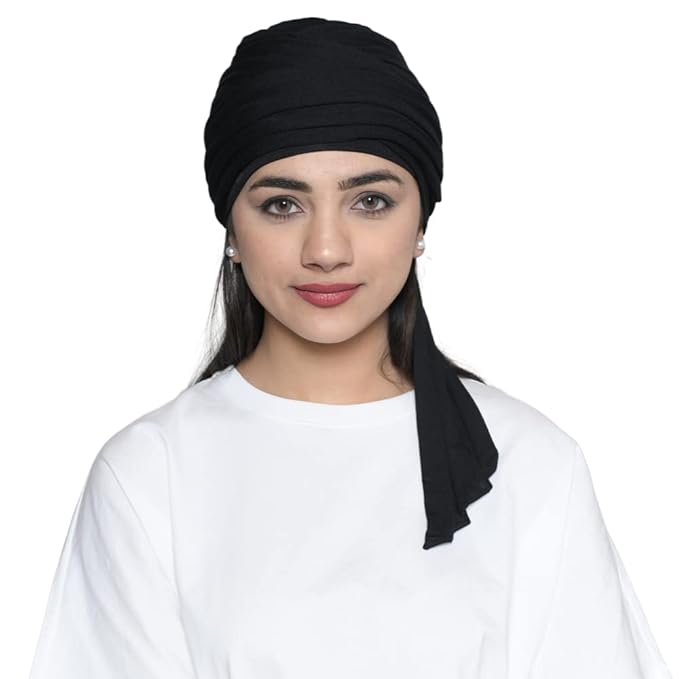 The Headscarves Women’s Bamboo Viscose Sleep Cap with Pleated Tail Mantra Headwear (HS132_Multicolor)