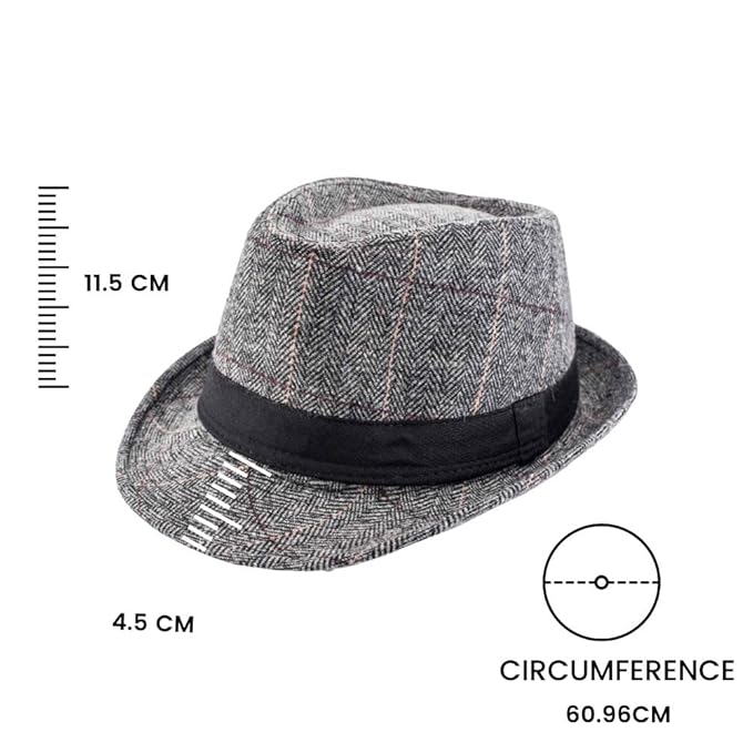 HATBAND: The Tie Hub fedora hat often features a decorative band around the base of the crown. This band is made of faux leather materials, adding a touch of style and distinction to the hat.
