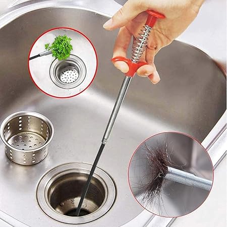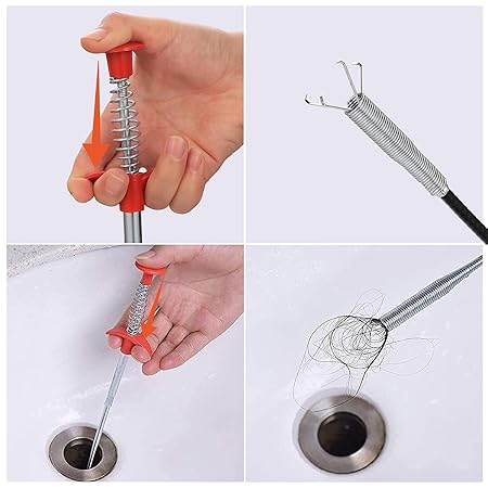 Easy to use, insert the flexible drain auger snake into the pipes, and press the handle to get the metal claw work, drag the garbages out and release the claw.