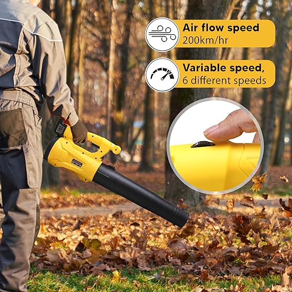 ADVANCED VARIABLE SPEED CONTROL: The blower features a pure copper motor with six variable speed settings, allowing you to adjust the power to suit different tasks. Whether you’re handling delicate garden areas or tackling heavy-duty cleaning, this blower provides the versatility and precision you need.