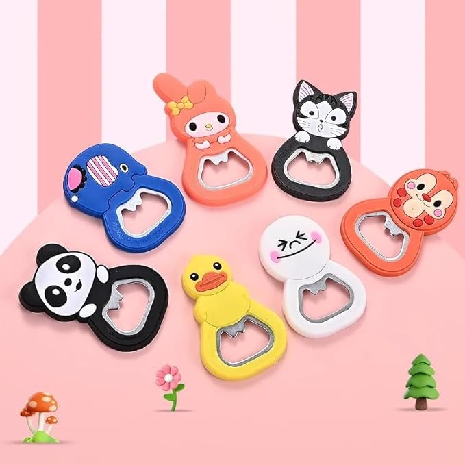 TraveEssentialz 3 pc Bottle Opener Fridge Magnet Set for Home or Travel Use | Beer Opener Bar Tool Accessories | Any 3 Random Designs Will Be Sent | Cute Silicon Bottle Opener Stylish