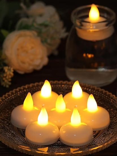 Battery Operated : LED Flameless Floating Tea Light Luminous Candles, light up when put on water, no need to switch manually. They are suitable for both indoor and outdoor, creating a warm and romantic atmosphere.