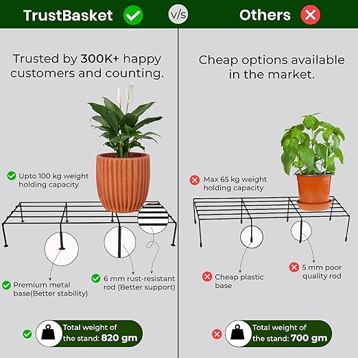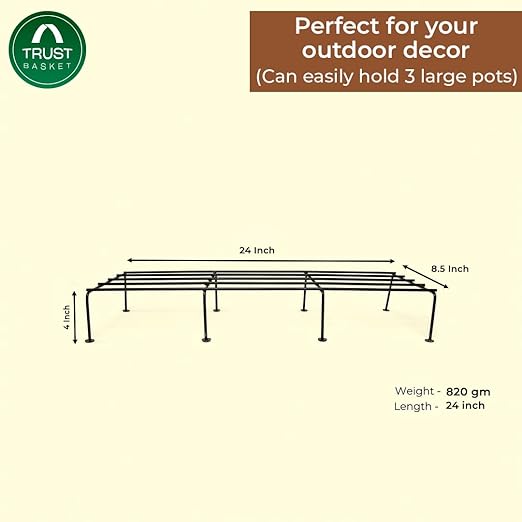 TrustBasket Indigo 100 Kg Capacity Anti Rust Metal Plant Stand for balcony (Set of 4 Black) | Planter stand for living room – 24 inches | Pot stand for outdoor & Indoor plants