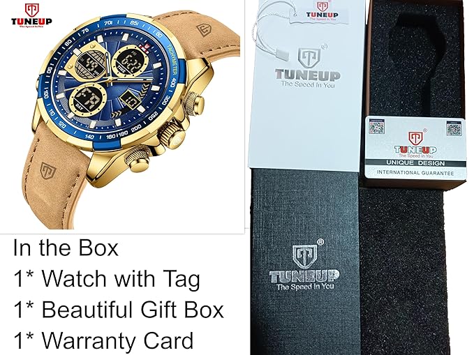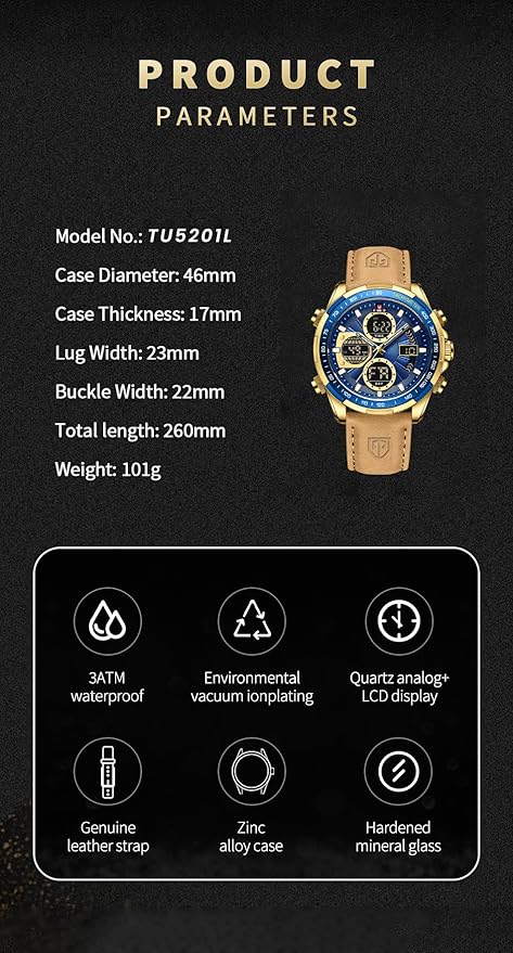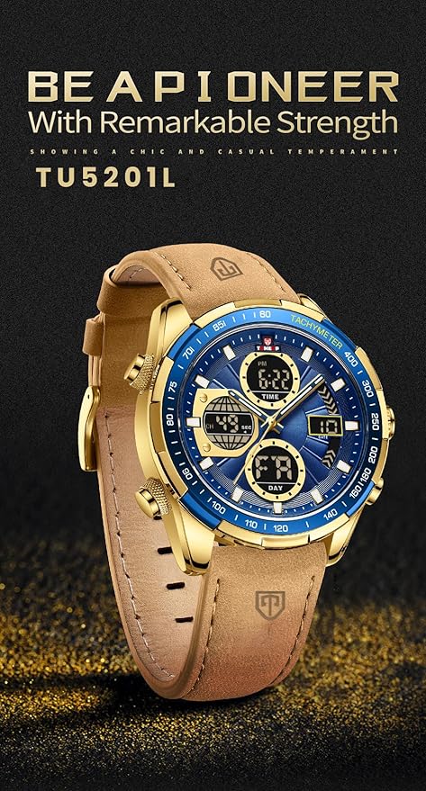 TUNEUP Men’s Military Digital Watches Analog Quartz Waterproof Watch Sport Multifunctional Leather Wristwatch