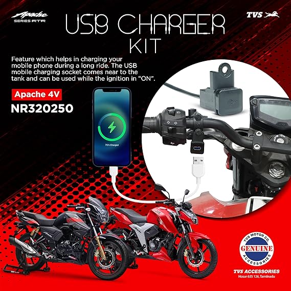 Compatible for TVS Apache Model Made of ABS environmentally friendly material 1.5A output current, charging a cell phone, tablet, GPS, etc.