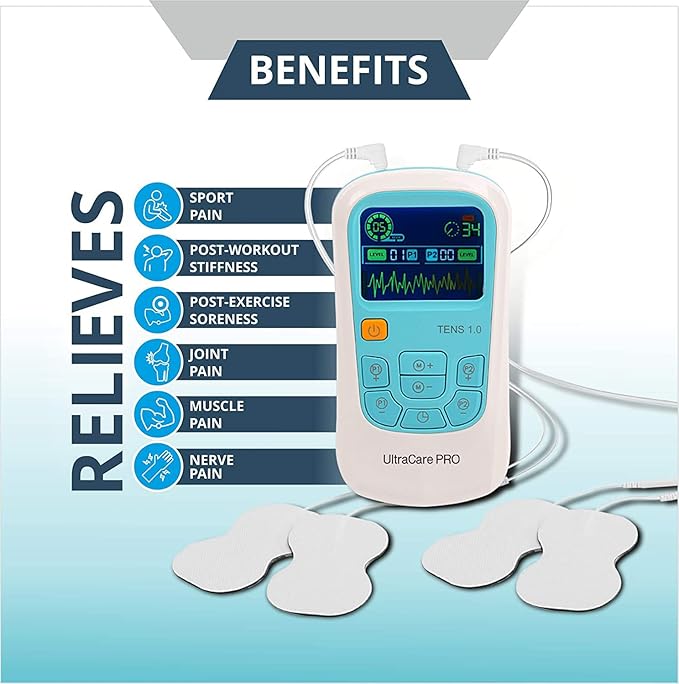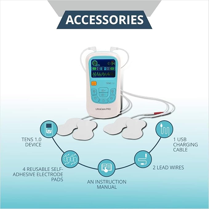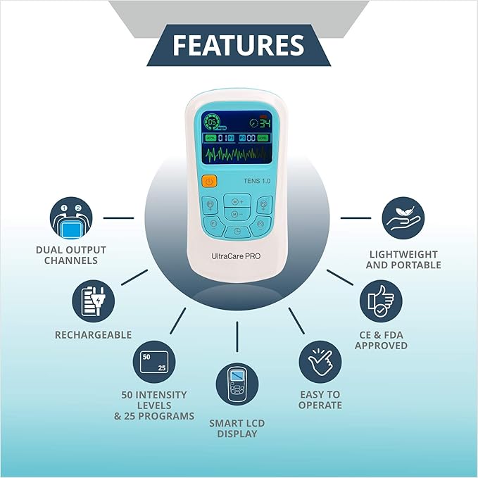 UltraCare PRO TENS 1.0 TENS Machine for Physiotherapy Massager, 25 Modes,50 Intensity Levels, Rechargeable, Dual Channel, TENS Unit, TENS Device, TENS Machine, Muscle/Nerve Stimulator for Pain Relief
