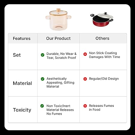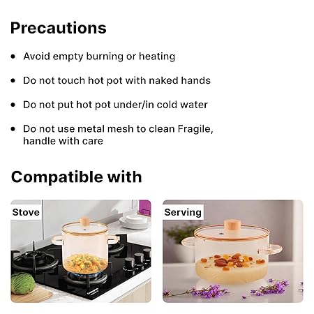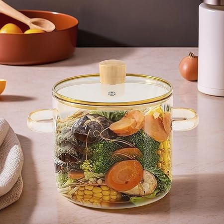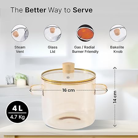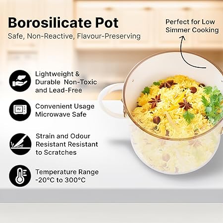 UMAI Borosilicate Glass Cookware for Gas with Lid & Handle (2.3 L) | Diwali Gift | Electric Pottery Safe | Handi for Cooking | Microwave Safe | Boiling Pan | Cooktop for Tea/Milk (Amber)