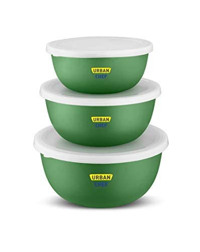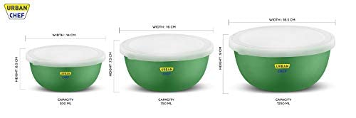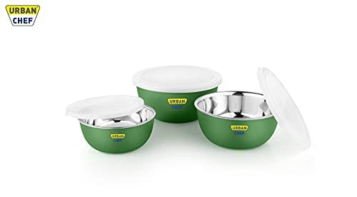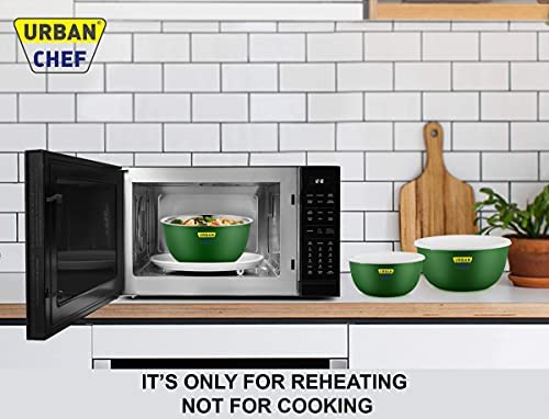 URBAN CHEF Microwave Safe Bowl | 1 Year Warranty | Diwali Gifts, Serving Bowl with Lid, Mixing Bowl, Oven Bowl Set Microwave, Flora Stainless Steel Bowl Set of 3 with 500ml, 800ml, 1250ml-Dark Green