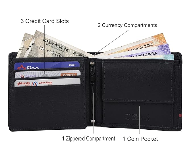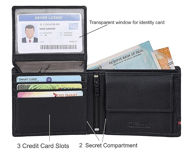 Special Feature: The wallet has 6 inbuilt card Slots, 2 currency Slots, 2 Secret Compartment, a Coin Pocket, and a Transparent Windows for your Driver’s License or work Id.