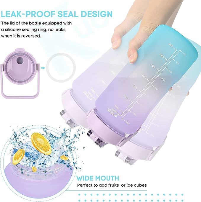 Half Gallon Capacity: 2000ml capacity ensures you enjoy one full water bottle/jug without having to refill it. Featured with measuring scale help you check the actual amount of water intake simply and clearly. The wide-mouth design is easy to clean and fill with ice cubes or fruit juice and effectively cleaned.