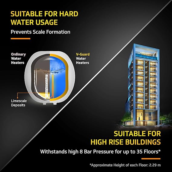 SUPERIOR PERFORMANCE: Suitable for Hard Water Usage, thereby enabling prevention of scale formation, Suitable for High-rise Buildings up to 35 Floors (Approximate Height of each Floor: 2.29 m) as it can withstands pressure up to 8 bar, also making it suitable for pressure pump applications